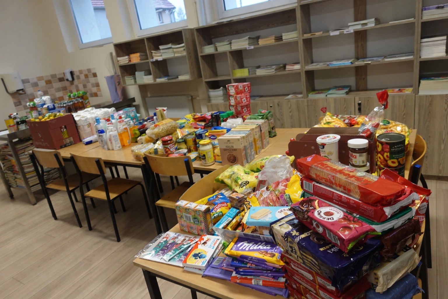 Zgromadzone dary zostały podzielone i przekazane rodzinom uczniów naszej szkoły oraz starszym mieszkańcom
